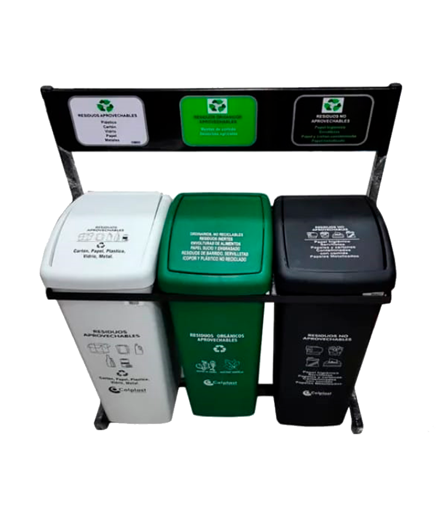 Punto Ecológico con estructura metálica 3 canecas x 35 Litros